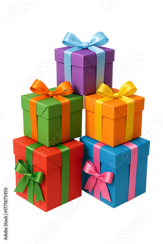 © Rinku, Fototapeta premium Colorful Present Towers, Festive Gift Piles high quality Realistic image.