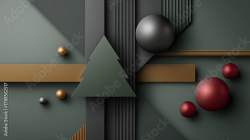 Obraz premium Colorful presents, a gold Christmas tree, and red berries create a festive...