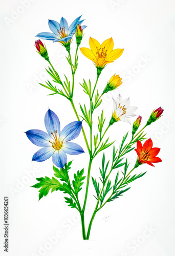 © peemee19, Naklejka premium Colorful Pressed Flowers on White Background.