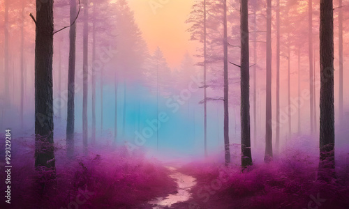 © Giorgi, Fototapeta premium colorful purple soft fog in the forest