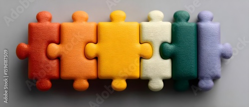 © Chom, Obraz premium Colorful puzzle pieces arranged in a linear fashion