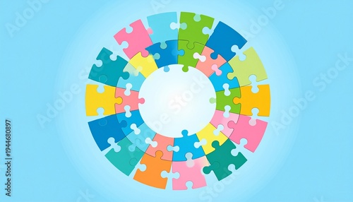 Obraz premium Colorful puzzle pieces circle autism awareness symbol vector design isolated...