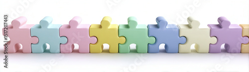 Obraz premium Colorful puzzle pieces connected in a row on a clean white background perfect...
