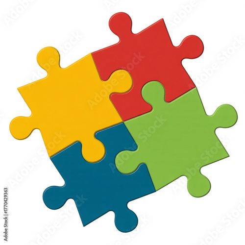 © Inzamamul, Obraz premium Colorful puzzle pieces interlocking on a white background creating a playful and engaging visual experience for all ages on transparent background