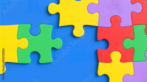 Obraz premium Colorful puzzle pieces on a blue background. Concept of problem solving, business connection, team collaboration and perfect for educational and learning material backdrop.
