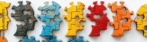 Obraz premium Colorful puzzle pieces shaped like human heads, symbolizing diversity and...