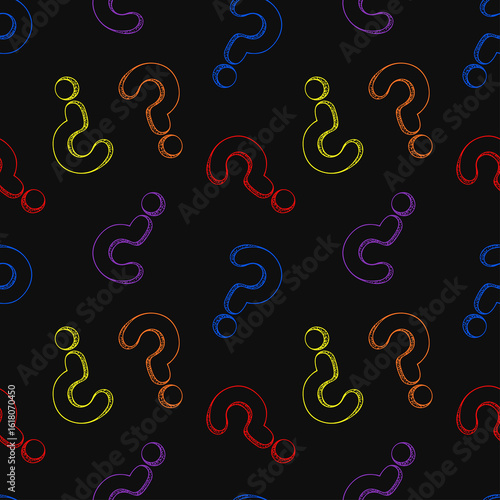 Obraz premium Colorful question marks seamless pattern on black background. Outline...