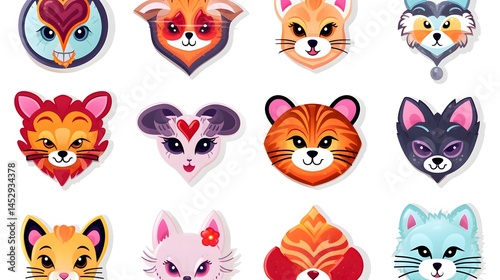 © Henrry, Naklejka premium Colorful Quirky Fashion Patches Set with Animals and Diamond Heart Design