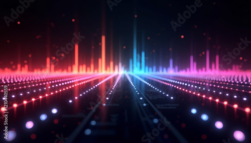 © Arra Vais, Obraz premium Colorful radio wave spectrum displayed on a sleek digital interface with glowing peaks and lines