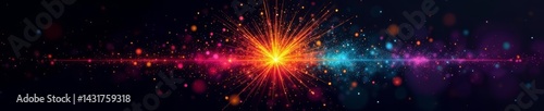 © Boonyapawn, Naklejka premium Colorful rainbow burst on black backdrop, artistic graphic design element, black background, artistic