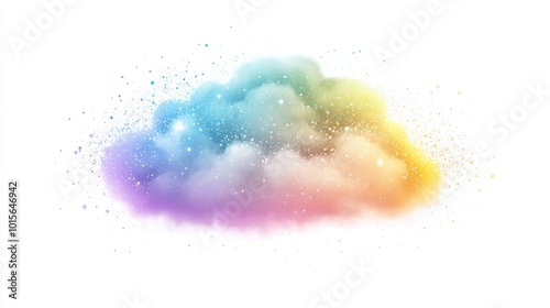 Fototapeta premium Colorful rainbow cloud with vibrant sparkles and glitter, isolated on white...