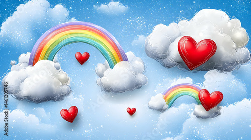 Fototapeta premium Colorful Rainbow Clouds Hearts Background