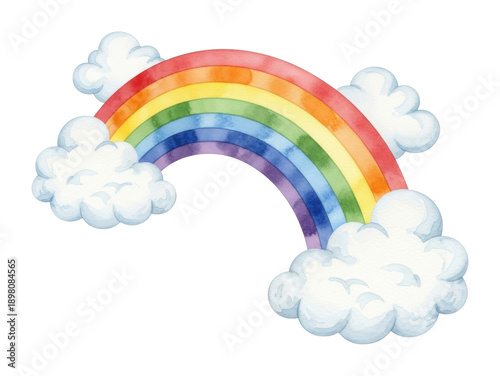Fototapeta premium Colorful rainbow emerging from fluffy clouds nature scene joyful art isolated...