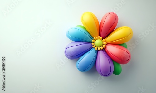 © Maryanto, Fototapeta premium Colorful rainbow flower 3D render on white background.