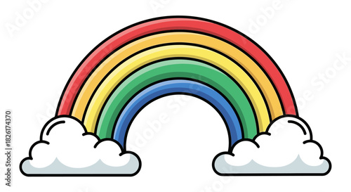 Naklejka premium Colorful Rainbow Illustration A Vibrant Arc in the Sky with Clouds