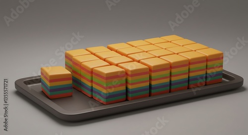© M.Rivalsyah, Obraz premium Colorful Rainbow Layer Cakes Arranged on a Tray