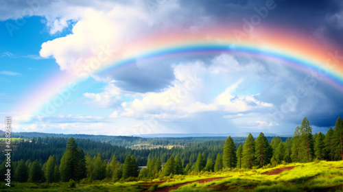 © Fukume, Obraz premium colorful rainbow over the forest generative ai