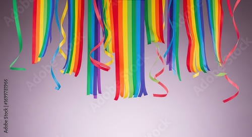 © irfanstock, Fototapeta premium Colorful Rainbow Ribbons Draped Against a Soft Lavender Backgrou