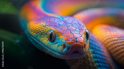 © Andres Mejia, Obraz premium Colorful rainbow serpent posing on a branch