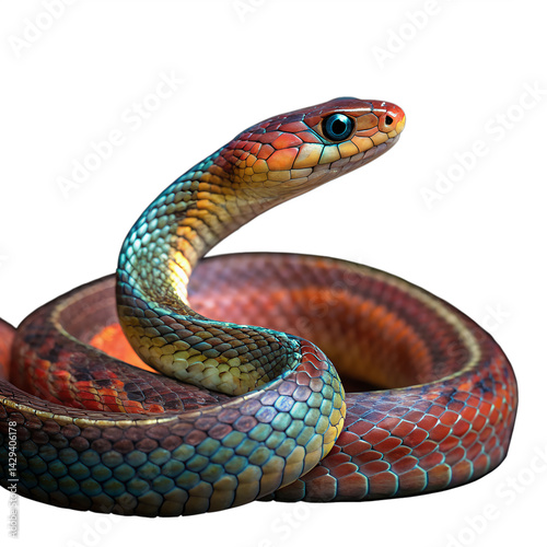 © Mol, Fototapeta premium Colorful Rainbow Serpent snake coiled on a transparent background