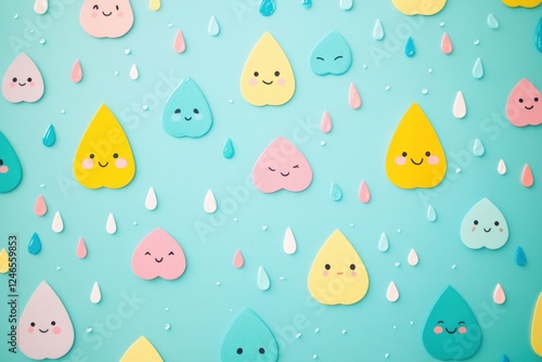 Naklejka premium Colorful raindrop characters with happy faces on a playful blue background