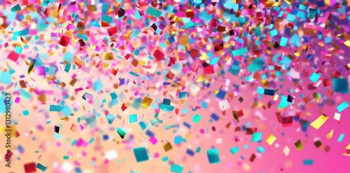 © Npicture, Obraz premium Colorful rectangular confetti falling down against a gradient pink background