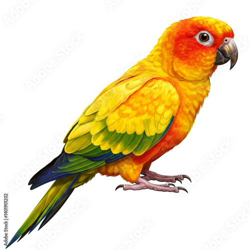 © Anucha, Obraz premium Colorful red and yellow sun conure parrot,isolate on white background