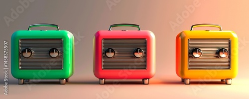 © Aris Suwanmalee, Fototapeta premium Colorful retro audio cassette players arranged in a vibrant display.