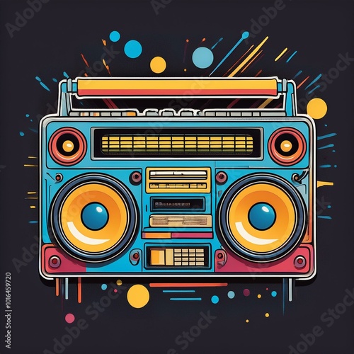 © Melvin, Fototapeta premium Colorful retro Boombox graphic illustration.