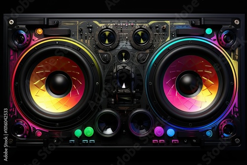 Fototapeta premium Colorful retro boombox with vibrant speakers and controls
