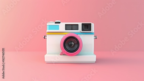 © GOLVR, Fototapeta premium Colorful Retro Instant Camera with Pink Lens Pastel Background - Vintage Photography Art