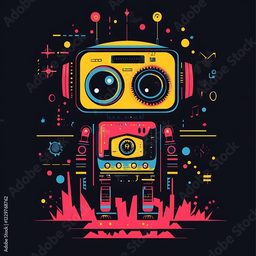 © Indri, Fototapeta premium Colorful retro robot graphic design illustration