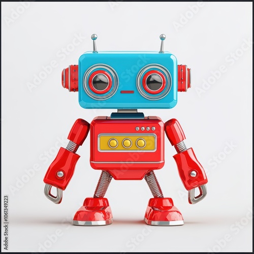 Fototapeta premium Colorful retro robot toy with round eyes and a cheerful expression, standing...