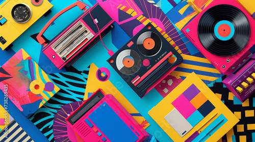 Obraz premium Colorful Retro Tech and Accessories Flatlay