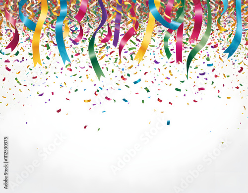 Fototapeta premium Colorful ribbons and confetti shower