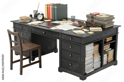 © tlepry, Fototapeta premium Colorful ring binders stacked with loose papers and documents secured with dark green elastic bands on top, isolated on a transparent background
