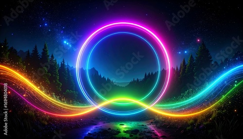 © Sintia, Obraz premium Colorful rings over a night landscape