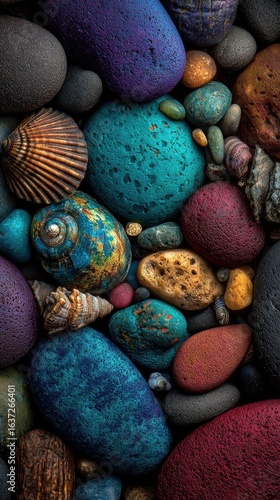 © revaa, Obraz premium Colorful rocks and shells close-up
