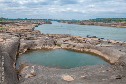 © sunti, Fototapeta premium Colorful rocks, puddles and strange shaped rocks in the Mekong River