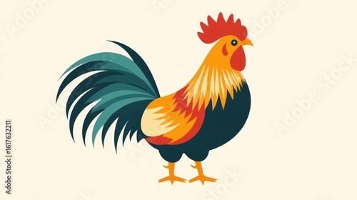 © adiba, Fototapeta premium Colorful rooster illustration, front view, neutral background, ideal for children's books, educational materials