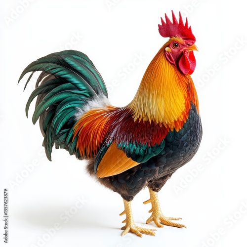 © Surin, Fototapeta premium Colorful Rooster Portrait Against White Background