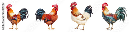Fototapeta premium Colorful roosters isolated on a transparent background