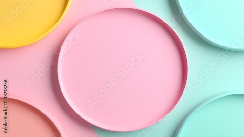 Obraz premium Colorful Round Plates on Pastel Backgrounds Perfect for Table Settings and...