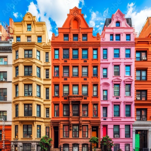 © Big9869, Fototapeta premium Colorful row houses on a sunny day.