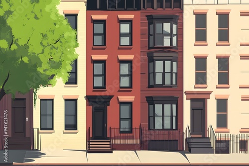 © Adobe Contributor, Naklejka premium Colorful Row Houses on a Sunny Day