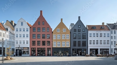 © Iswanto, Fototapeta premium Colorful row of traditional buildings in a sunny square.