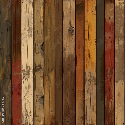 © malayeka, Fototapeta premium Colorful rustic wooden planks background texture.