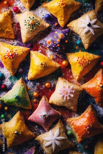 © Natalia, Fototapeta premium Colorful samosas ready for the holidays with sprinkles, perfect sweet treat.