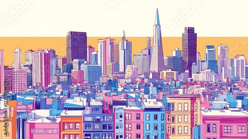 Naklejka premium Colorful San Francisco Skyline Panorama