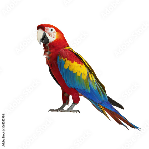 © missisya, Fototapeta premium Colorful scarlet macaw parrot bird isolated transparent background on transparent background